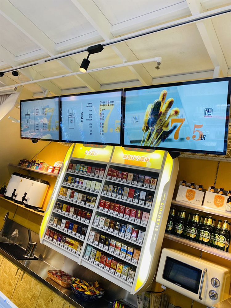 Wall mounted LCD advertising machine displays water signs in chain stores