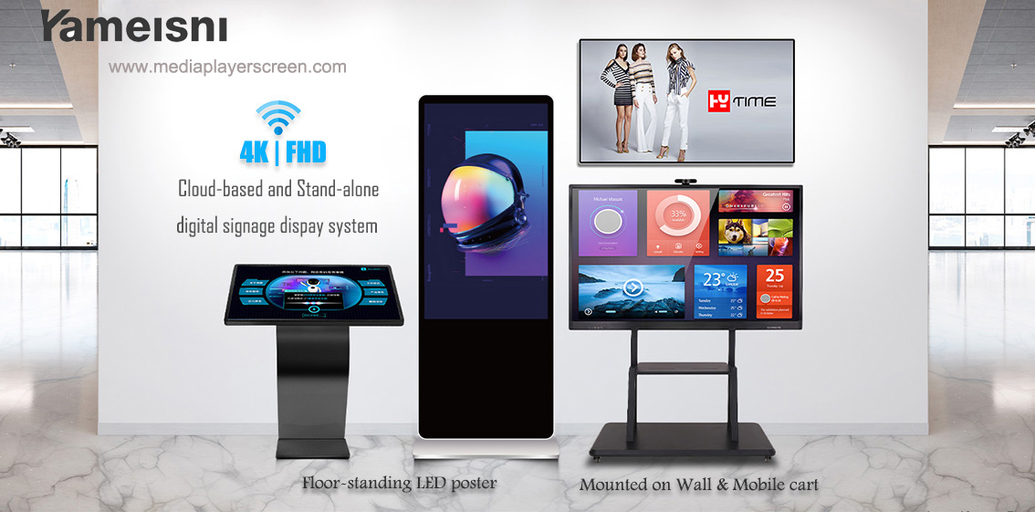 Yameishi indoor digital signage solution including splicing video wall display, smart meeting screen, display stand, interactive whiteboard for kids, digital display, digital menu board, self service kiosk, transparent display, e paper display, digital signage solutions, digital screen display, digital kiosk, advertising displays, software digital signage, digital screen advertising, touch screen coffee table, digital signage for remotely management system,Camera AI Facial recognition.QR scaner,RFID,printer,NFC.