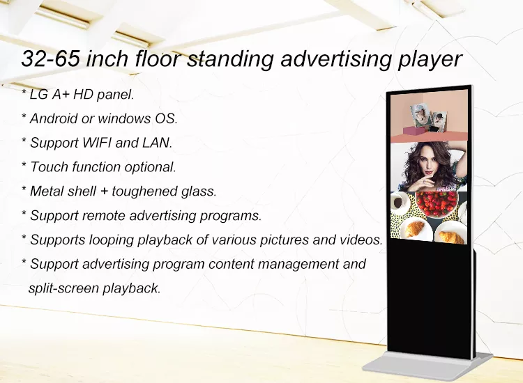 super slim floor standing lcd signage android kiosk smart advertising players screen board digital signage