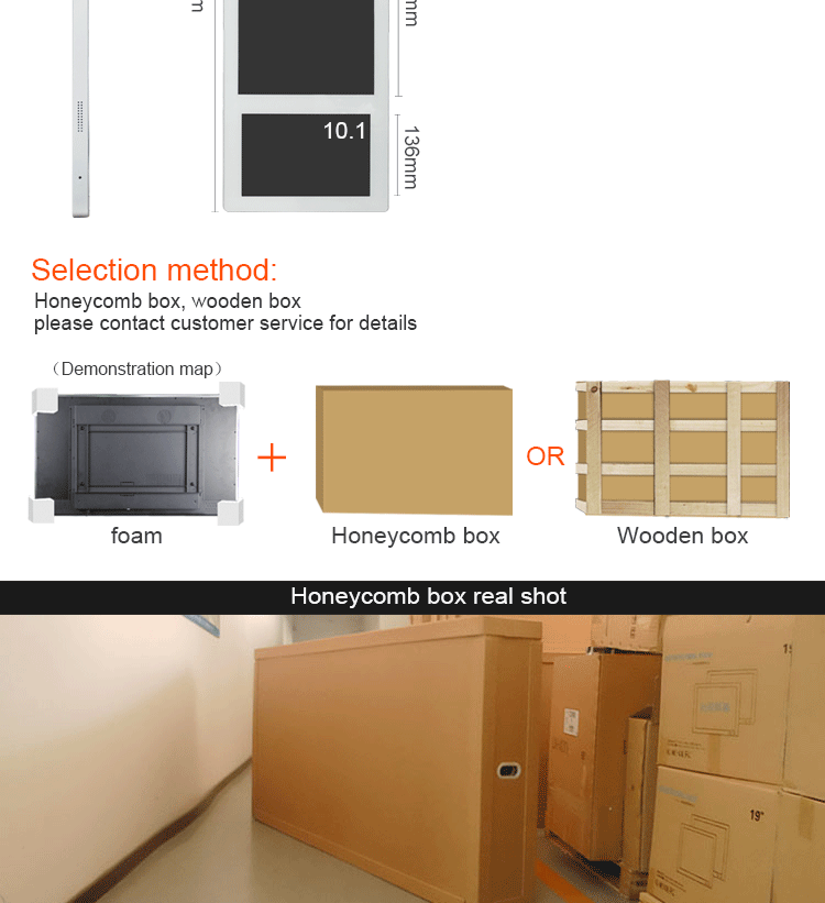 Why choose us:1. >8-years professional manufacturing experience only in digital signage field.2. LCD display projects from 8" to 108‘ in various brightness can be tailor-made according to your specific requirements.3. Rich experience in OEM and ODM projects in more than 10 years.4. Less MOQ can meet your various requirements.5. Fast delivery time, sample needs 10-15days, bulk needs 15-20days, have stock of standard item.6. Flexible Payment term: support T/T, L/C, Westunion, Paypal.7. Shipments: Internation express, airfreight, oceanfreight.8. Warranty: 2-years warranty, lifetime maintenance.