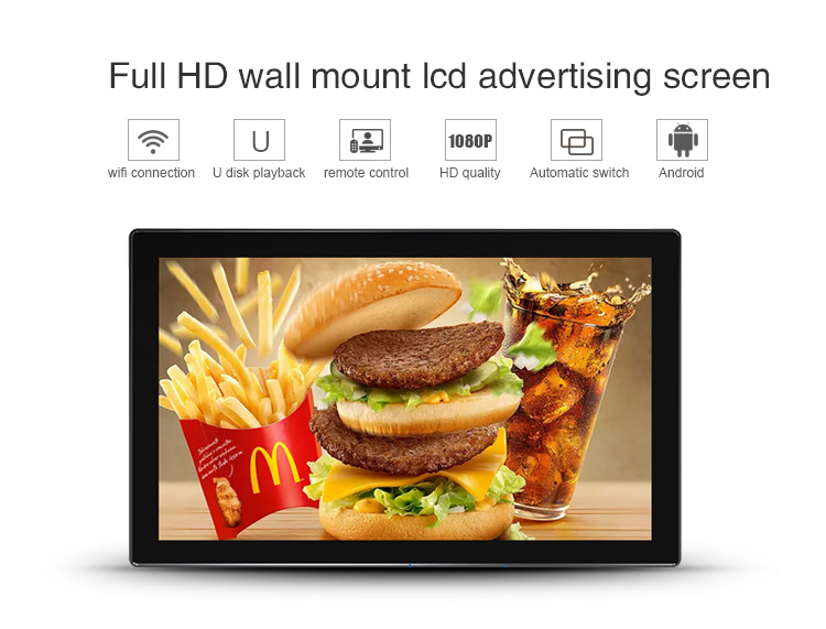 Wall mounted advertising machine is a brand-new media concept, which refers to a multimedia professional audio-visual system that publishes commercial, financial and entertainment information through large screen terminal display equipment in large shopping malls, supermarkets, hotel lobbies, hotels, cinemas and other public places where people gather.