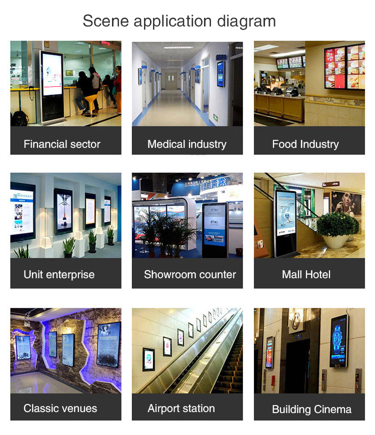 The system product can play advertisement information to specific people in specific physical places and specific time periods, and can also count and record the playing time, playing times and playing range of multimedia content, and even realize powerful functions such as interaction function, recording viewing times and user stay time while playing, Digital signage / advertising machine system has been favored by more and more commercial owners.The Features of lcd advertising display.