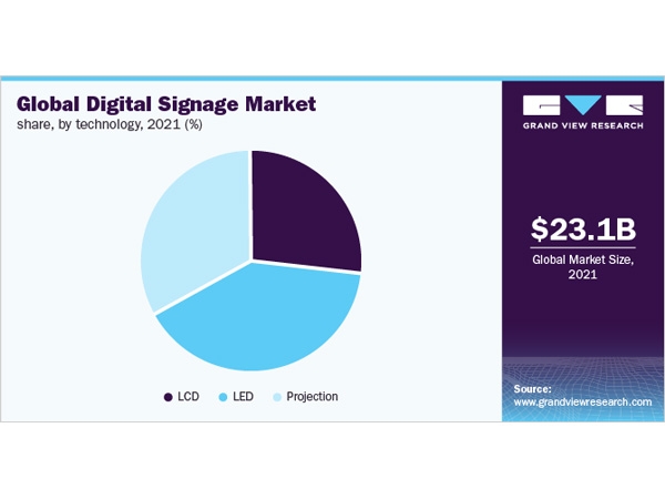 The global digital signage market size was estimated at USD 23.12 billion in 2021 and is expected to expand at a compound annual growth rate (CAGR) of 7.7% from...