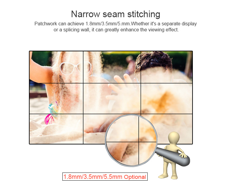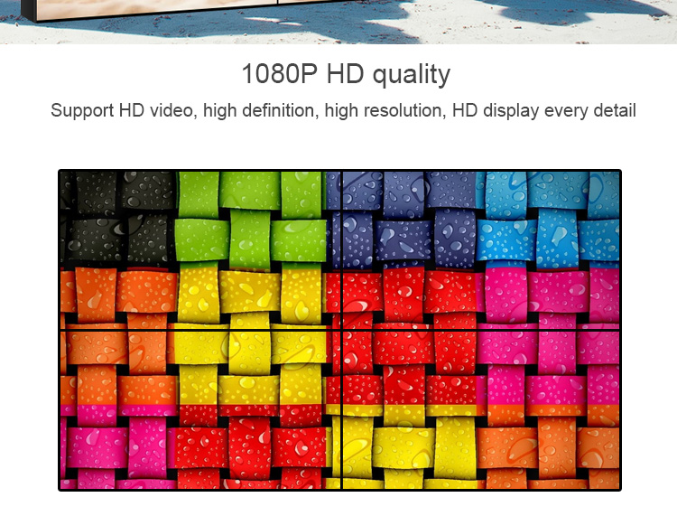 1. The splicing unit adopts a unique OPS modular design, which is convenient for after-sale inspection and maintenance.2. Single screen can support 11920 * 1080 HD picture. Ultra HD resolution,3. Support a variety of signal interfaces to meet user needs for different input signals: DP * 1, HDMI * 1, DVI * 1, VGA * 1, RS232 * 3, USB * 1, AV * 14, 7x24 hours of continuous continuous work, life up to 60,000 hours.5, using professional color calibration technology, through this technology, in addition to color calibration for still pictures, dynamic color calibration can also be performed to ensure the accuracy and stability of the picture output.6. The intelligent temperature control system adopts a dual fan design to ensure that the internal temperature is within 55 degrees, making it safer to use.7, de-interlacing processing technology to eliminate flicker; de-interlacing algorithm to eliminate "aliasing"; dynamic interpolation compensation, 3D comb filtering, 10-bit digital brightness and color enhancement, automatic skin color correction, 3D motion compensation, non-linear scaling, etc. International leading technology processing.8. Supports multi-language menu operating systems in Chinese and English, and a human-friendly human-machine interaction interface to meet the needs of different customers.9. Industrial A grade LCD panel, splicing can be combined arbitrarily (MXN), the maximum support for 15X15 unit splicing, input signal line by line, can be accurate to 1 pixel segmentation control.