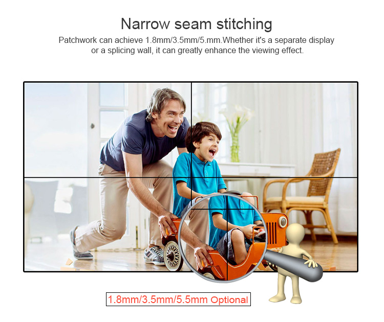 1). The physical resolution is 1920 * 1080, which is compatible with the resolution below, and automatically adjusted to the best state.2). AC100V-240V alternating current to directly supply power, which makes the product application area wider.3). Automatically identify PAL / NTSC video format.4). Support local infrared remote control and RS232 control operation.5). With 3D comb filter, dynamic noise reduction technology, and frame compensation function, highly restored real picture using Samsung or LG‘s unique DID screen, which can be placed horizontally or vertically, and has "automatic constant temperature" adjustment. Features.6). It can automatically detect the internal temperature, so that the fan can reduce the internal temperature, long life (60,000 hours), stable operation, no burns, damage, low maintenance costs, unique modular design, can be used as a splicing wall Use, can also be used alone.Place of Origin: