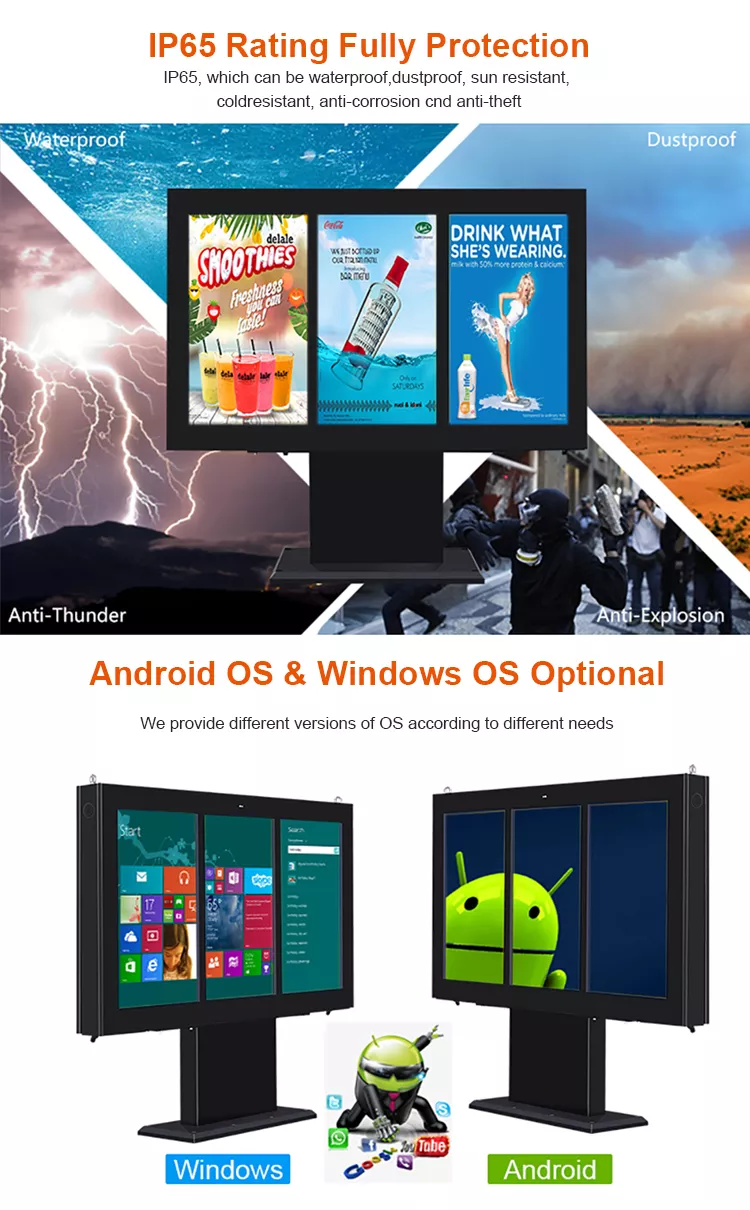 Sunlight Readable:With brightness rach up to 4000nits, Yameishi Outdoor Display is crystal clear and readable even under direct sunligh conditions,ideal for full outdoor install.
