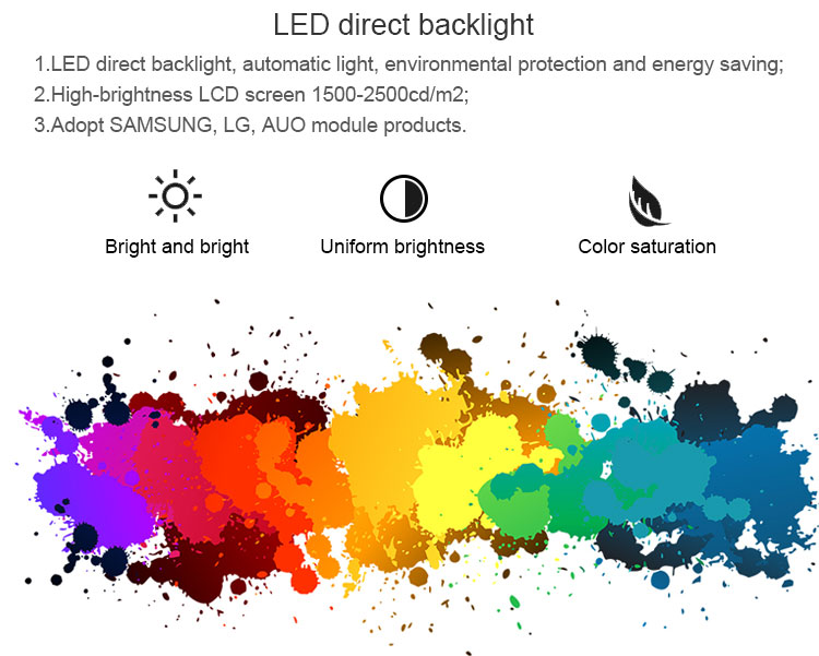 Advanced color management solutions provide customers detailed options on color management. Users can adjust color by automatic or manual mode. Due to taking direct LED backlight, the uniformity of brightness 2500-5000 nits of screens can reach over 90%, and are more readable, colorful and accurate.