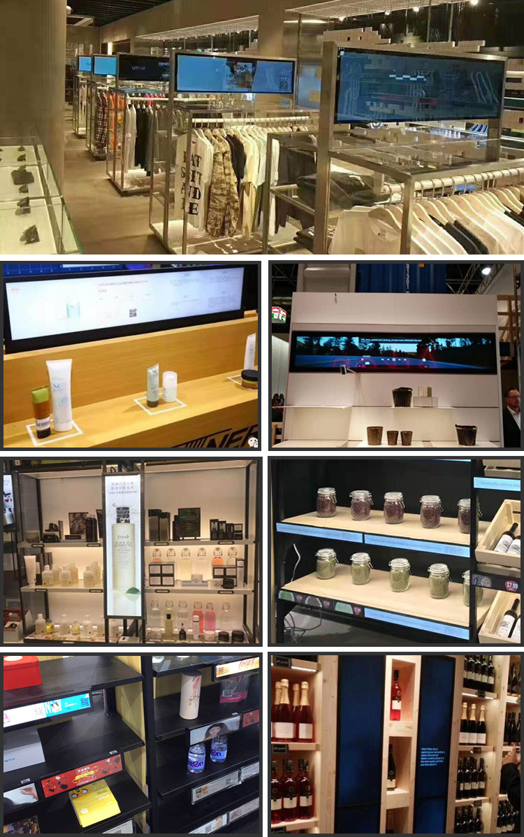 Applications:The retail digital signage shelf lcd display is an attractive Shelf Edge LCD well suited for a variety of in-store, on-shelf digital signage applications such as retail shelf edge pricing, retail shelf edge advertising, and multi-shelf digital signage in supermarkets, grocery stores, liquor stores, clothing stores, and other retail applications. Such a smart shelf system is end to end digital retail TFT shelf edge display solution perfect for retail POS applications, and it can turn your shop into a modern retail business to enhance customers’ shopping experience.Retail Shelf Edge PricingRetail Shelf Edge AdvertisingMulti-Shelf Digital Signage